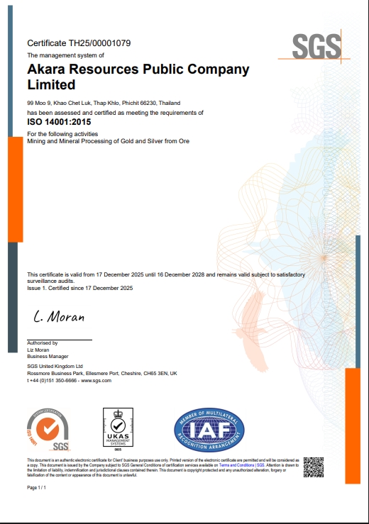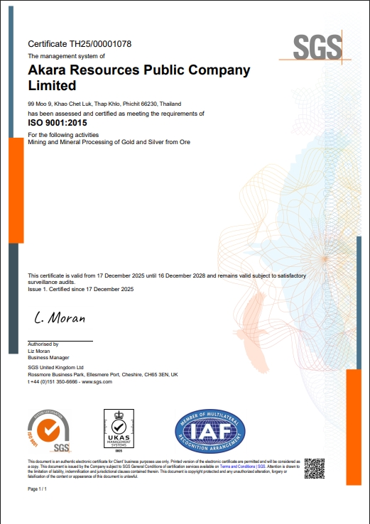 ความสำเร็จดังกล่าวสะท้อนถึงการดำเนินงานของอัคราที่ให้ความสำคัญกับคุณภาพ ความรับผิดชอบต่อสิ่งแวดล้อม และความปลอดภัยของพนักงานและผู้มีส่วนได้ส่วนเสียทุกภาคส่วน โดยสอดคล้องกับวิสัยทัศน์ขององค์กรที่มุ่ง “สร้างคุณค่าให้แก่ผู้มีส่วนได้ส่วนเสียทุกภาคส่วนอย่างปลอดภัยและยั่งยืน ผ่านความเป็นเลิศในการดำเนินงาน และการใช้ศักยภาพของทรัพยากรแร่ให้เกิดประโยชน์สูงสุด”
